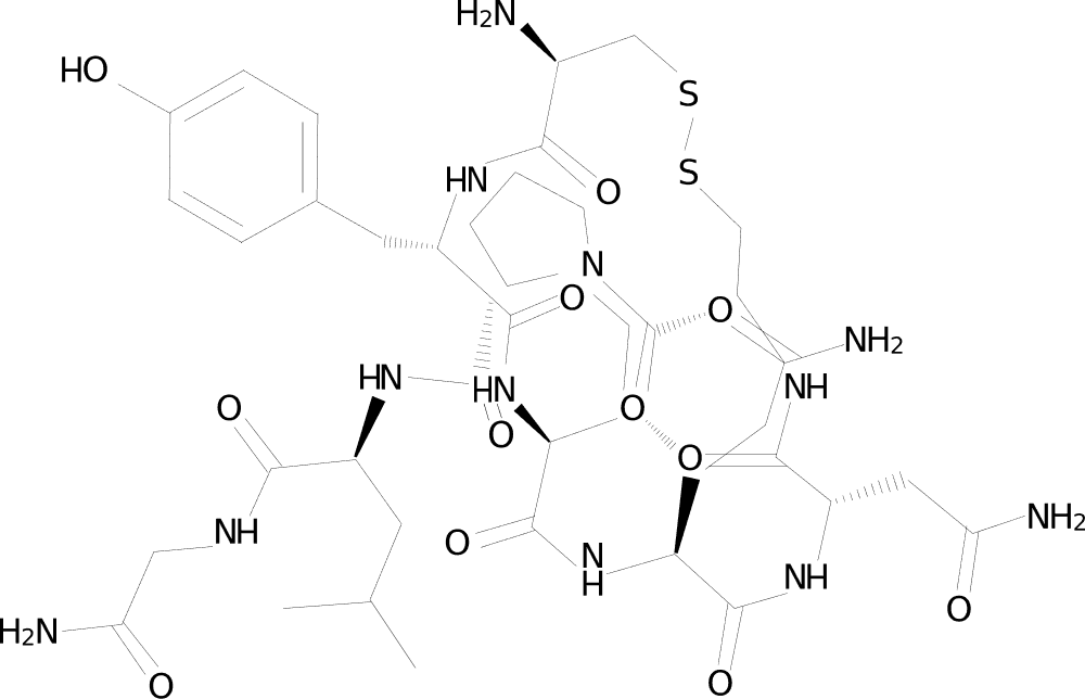 La oxitocina es un non péptido cíclico con un puente de disulfuro entre residuos de cisteína en las posiciones 1 y 6, sintetizada como una prohormona en neuronas magnocelulares hipotalámicas y transportada a la pituitaria posterior para su liberación. A través de la unión a los receptores de oxitocina (OXTR), un receptor acoplado a proteínas G, activa las vías mediadas por la fosfolipasa C que conducen a la liberación de calcio intracelular y a la activación de la proteína quinasa C. Los modelos de investigación examinan los efectos de la oxitocina sobre la contractilidad del músculo liso uterino, la contracción de las células mioepiteliales en el tejido mamario, la cognición social y los comportamientos de vínculo, la regulación de la respuesta al estrés y la modulación del sistema nervioso autónomo en entornos de laboratorio.